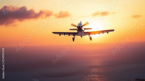 Serene Sunset Scene Featuring Warplane Over Ocean