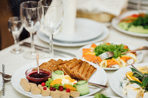 Served dishes to the table for holiday.