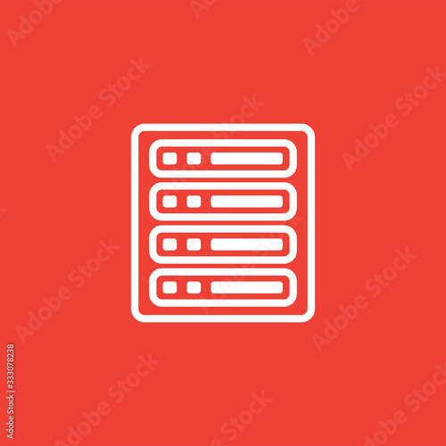Server Line Icon On Red Background. Red Flat Style Vector Illustration