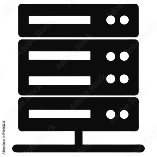 Server rack black and white vector on white background.