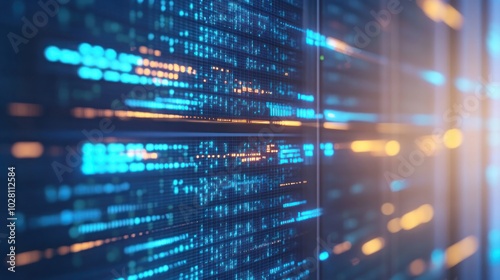 Server Rack with Blue and Orange Lights