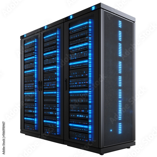 server rack with servers isolated on transparent white background, clipping path