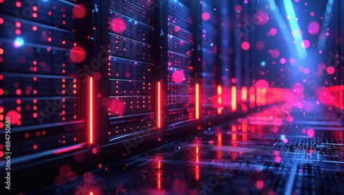 Servers Illuminated by Red Lights