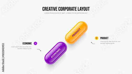 Service Solution 2 Step Diagram Slide Design. Professional Showcase Presentation Template Vector Illustration. Corporate Insight Two Element Infographic Slideshow Layout.