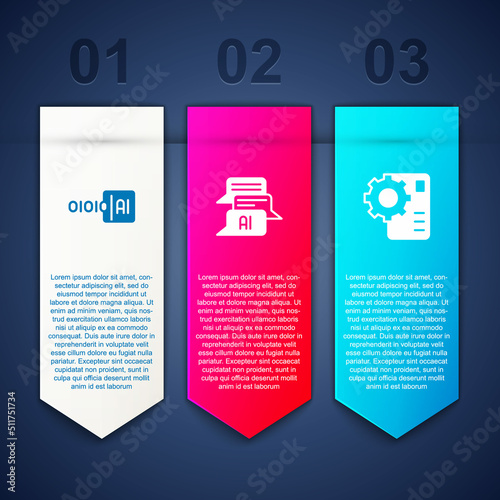 Set Binary code, Chat bot and Neural network. Business infographic template. Vector