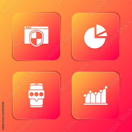 Set Browser with shield, Pie chart infographic, Mobile and password and icon. Vector