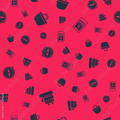 Set Cruise ship, Beach bag, Compass and ticket on seamless pattern. Vector