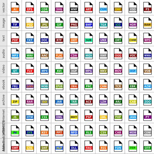 Set file types icons in flat style