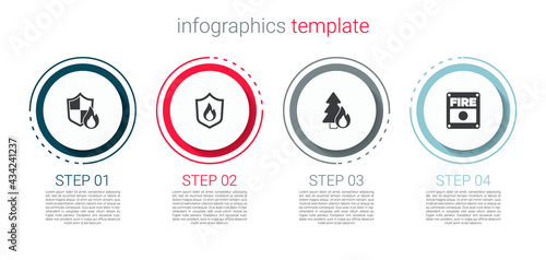 Set Fire protection shield, , Burning forest tree and alarm system. Business infographic template. Vector
