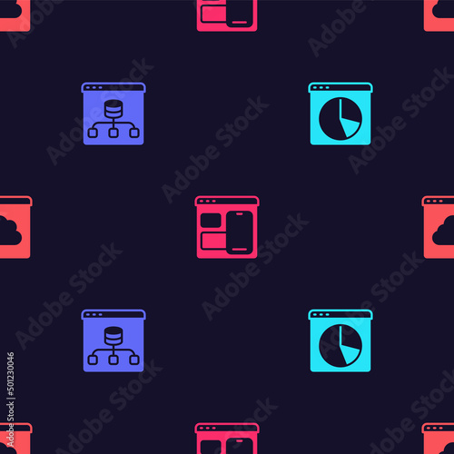 Set Graph chart infographic, Server, Data, Web developer programming code and Cloud technology data transfer on seamless pattern. Vector