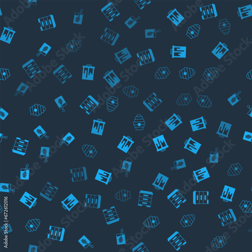 Set Hive for bees, Honeycomb, and dipper stick on seamless pattern. Vector