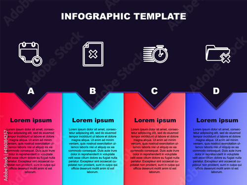 Set line Calendar and clock, Delete file document, Stopwatch and folder. Business infographic template. Vector.