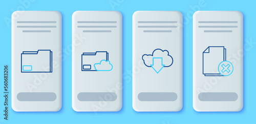 Set line Cloud storage text document folder, download, Document and Delete file icon. Vector