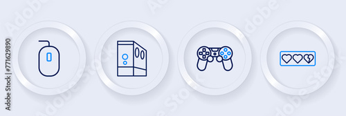 Set line Game life bar, controller or joystick, Case of computer and Computer mouse icon. Vector