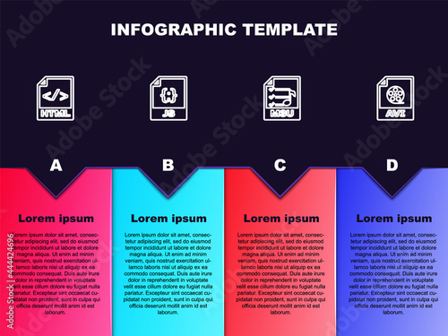 Set line HTML file document, JS, M3U and AVI. Business infographic template. Vector