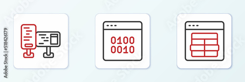 Set line MySQL code, Computer monitor screen and Binary icon. Vector