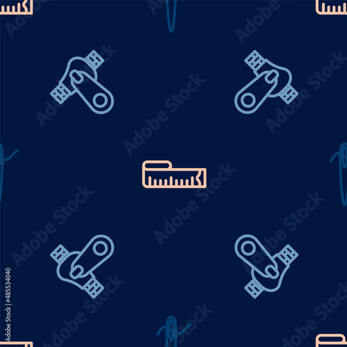 Set line Needle for sewing with thread, Zipper and Tape measure on seamless pattern. Vector