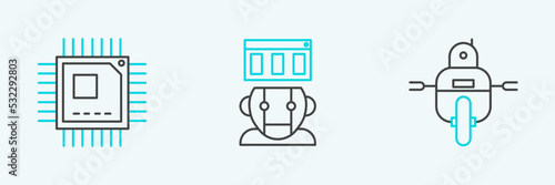 Set line Robot, Processor with microcircuits CPU and icon. Vector