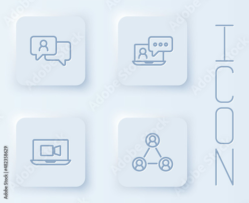 Set line Speech bubble chat, Video conference, and Meeting. White square button. Vector