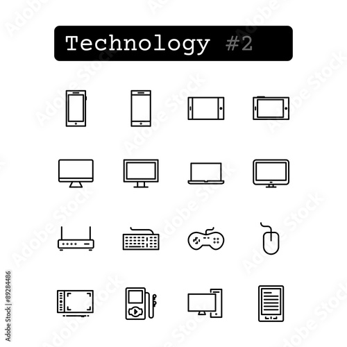 Set line thin icons. Vector. Technology, electronics.