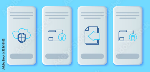 Set line Unknown document folder, Next page arrow, Cloud and shield and Delete icon. Vector