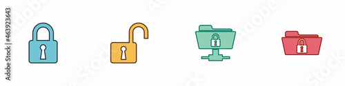 Set Lock, Open padlock, FTP folder and and Folder icon. Vector