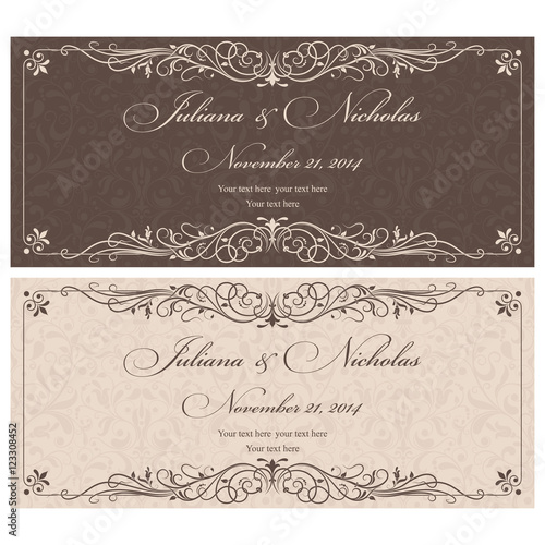 Set of 2 Wedding Invitation card Baroque