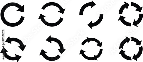 Set of Black Circular Arrows for Reload and Refresh, Cycle and Rotation Vector Icons, Simple Flow and Process Symbols AI Generative