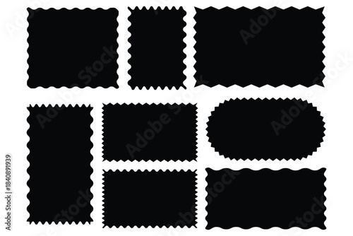 Set of black frames with zigzag edge vector, Set of vector frames, symbol. silhouette of square, rectangular, circular, zigzag edge frames vector.