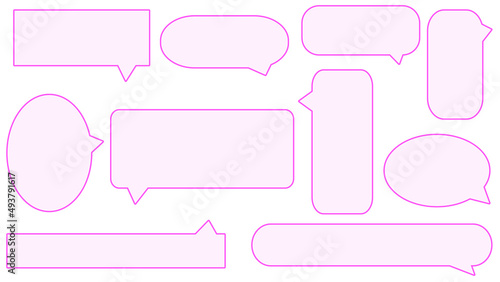 set of blank pink speech bubble, conversation box, chat box, speak balloon, thinking balloon, border frame on white background