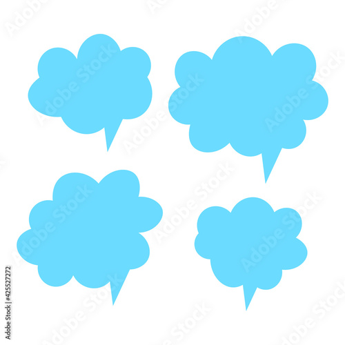 Set of blue speech bubbles. Cartoon Vector illustration. Isolated on transparent white background. Hand draw style, dialog clouds