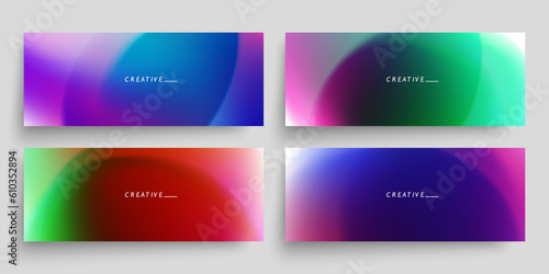 Set of blurred multicolored horizontal banners with bright color gradients. Defocused abstract vibrant templates collection for creative graphic design. Vector illustration.