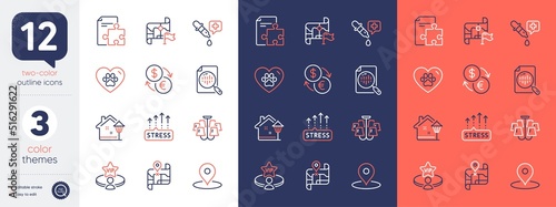 Set of Chandelier, Map and Pin line icons. Include Pets care, Currency exchange, Strategy icons. Destination flag, Analytics chart, Stress grows web elements. Chemistry pipette. Vector