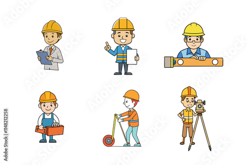 Set of Construction engineer working activities vector illustration