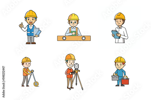 Set of Construction engineer working activities vector illustration