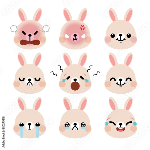 Set of cute cartoon rabbit emoji set isolated on white background. Vector Illustration.