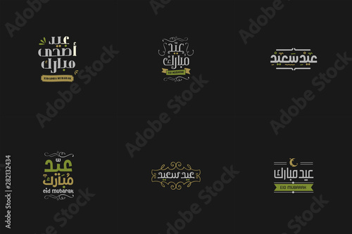 set of Eid Mubarak vector Arabic Calligraphy