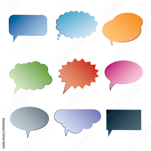 Set of flat color bubbles for speech. Elements for design.