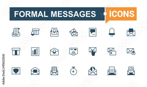Set of Formal Messages line icons. Contains such icons as connection, stroke, quality, technology, design, global and more. Editable vector outline and solid icons.