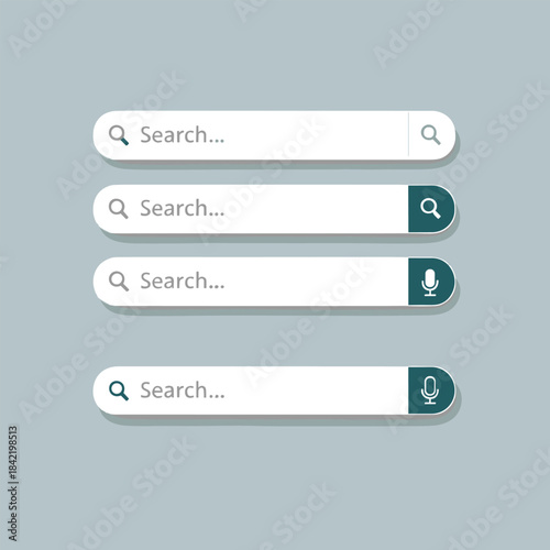 Set of four search bar input field vector mockups UI UX web app interface microphone voice search