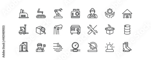 Set of icons for the factory. Editable stroke. Vector illustration