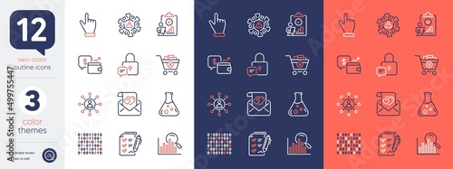 Set of Inspect, Lock and Networking line icons. Include Binary code, Love letter, Search icons. Chemistry lab, Remove purchase, Coronavirus web elements. Survey checklist, Wallet, Click hand. Vector