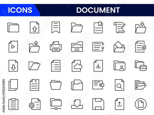Set of line icons related to documents, contract, passport, resume, archive. Outline icons collection.