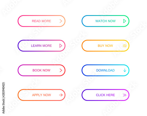 Set of modern material style buttons for website, mobile app and infographic . Different gradient colors. Modern vector illustration flat style