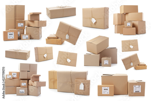 Set of parcel boxes isolated on white