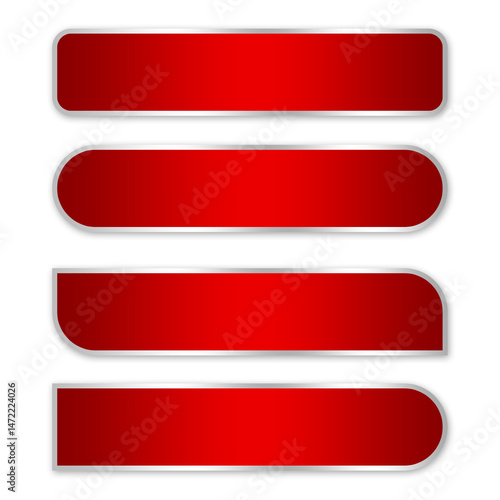 set of red buttons rectangle with silver line luxury element png file transparent background