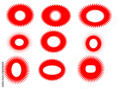 Set of Red Circular Sunburst and Starburst Vector Frames