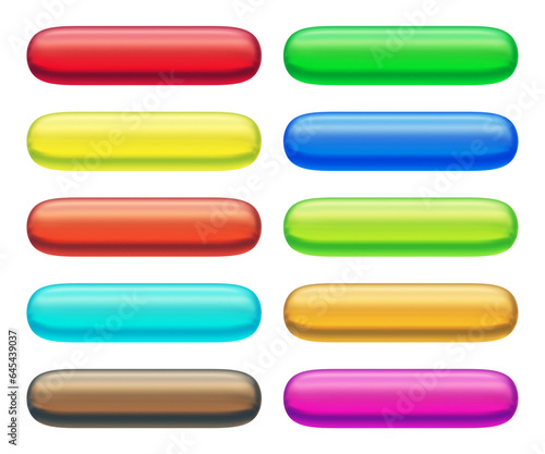Set of round rectangle shape buttons in 3d rendering isolated on transparent background for text, infographic, web and frame concept.