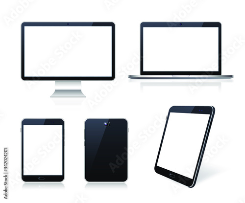 Set of Technological Devices with Blank Screen on White Background . Isolated Vector Elements