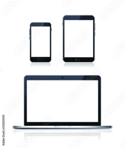 Set of Technological Devices with Blank Screen on White Background . Isolated Vector Elements